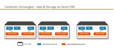 - Enabling low latency data access between application microservices and NexentaEdge storage microservices running concurrently on the same server infrastructure, eliminating the overhead associated with traditional iSCSI block access methods and delivering true container-converged infrastructure